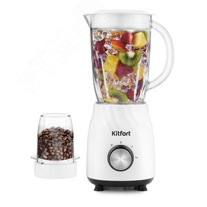 Готовьте всё, что хочется! Блендер Kitfort КТ-1379 идеально подходит для смешивания фитнес-напитков, приготовления смузи, протеиновых смесей, коктейлей, супов-пюре, детского питания. Кофемолка может перемалывать и измельчать твёрдые ингредиенты - кофейные зёрна, зёрна перца. Два прибора в одном. Освежающий смузи или бодрящий кофе? Всё и сразу! Блендер Kitfort КТ-1379 сочетает в себе функции двух устройств - это стационарный блендер 1,2 л и кофемолка 400 мл. Удобное и простое управление. Управление блендером осуществляется с помощью ручки регулировки скорости на передней панели. У блендера 2 скорости и импульсный режим. 4-лезвийный нож. Блендер оснащён прочным 4-лезвийным ножом из нержавеющей стали с оптимальной формой лезвий и заточки для эффективного измельчения продуктов.