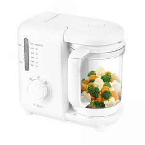 . Вкусные и полезные блюда лучше всего готовить на пару. Блендер-пароварка КТ-2320 подойдёт для этих целей и будет хорошим помощником родителям на кухне. Для обеспечения безопасности блендер может работать только с установленной чашей и закрытой крышкой. Резиновые ножки обеспечивают прочную фиксацию блендера на столе. Прибор готовит в 2 приёма - варит на пару, измельчает и смешивает. Благодаря постоянной циркуляции пара в чаше, продукты в корзине равномерно прогреваются и готовятся. По окончании готовки прибор автоматически отключается, поэтому пища не переварится. Блендер можно использовать в 3 режимах - измельчение, варка на пару, варка на пару с последующим измельчением. Управление прибором максимально простое - поворот ручки выбора режима влево включает варку на пару, вправо - режим измельчения и смешивания. Мыть части прибора удобно и просто.