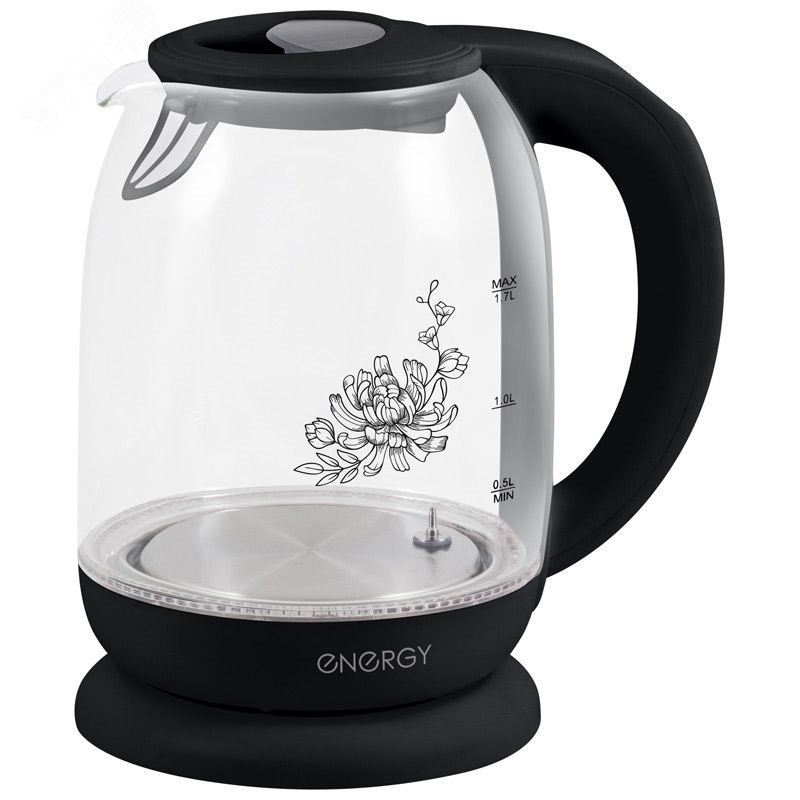 Электрочайник Energy E-286Т черного цвета обладает пятью режимами нагрева - 60°С, 70°С, 80°С, 90°С, 100°С. Изготовлен из комбинированных материалов - пластик, нержавеющая сталь, стекло. Есть фильтр, который предотвращает попадание накипи в воду. Нагревательный элемент — дисковый, мощностью 2200 Вт, работает от сети 220-240 В. Модель предназначена для нагрева воды объемом 1,7 л. Чайник оснащен внутренней подсветкой, которая выступает в роли индикатора включения. Также есть индикаторы уровня воды и температуры нагрева. В подставке присутствует отсек для хранения сетевого кабеля (0,8 м). Прибор оснащен функцией автоматического отключения после закипания. Есть блокировка включения прибора без воды в чайнике.