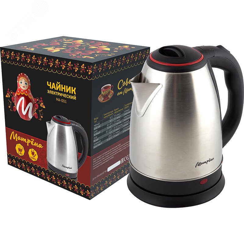 Чайник электрический стальной MA-001 на 1.8 л, цвет крышки красный