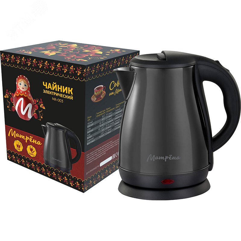 Чайник электрический стальной MA-003 на 1.8 л, цвет черный