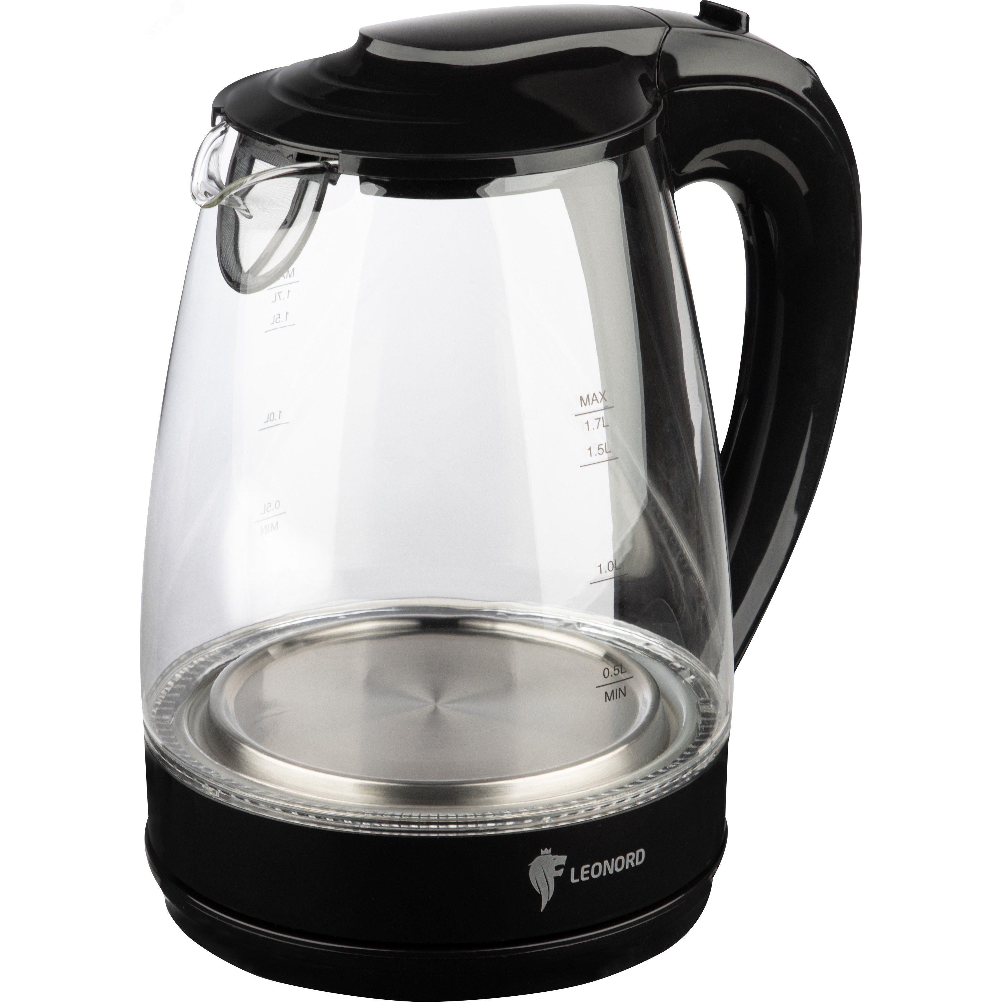 Чайник электрический LE-1514 на 1,7 л, материал стекло, пластик, цвет черный