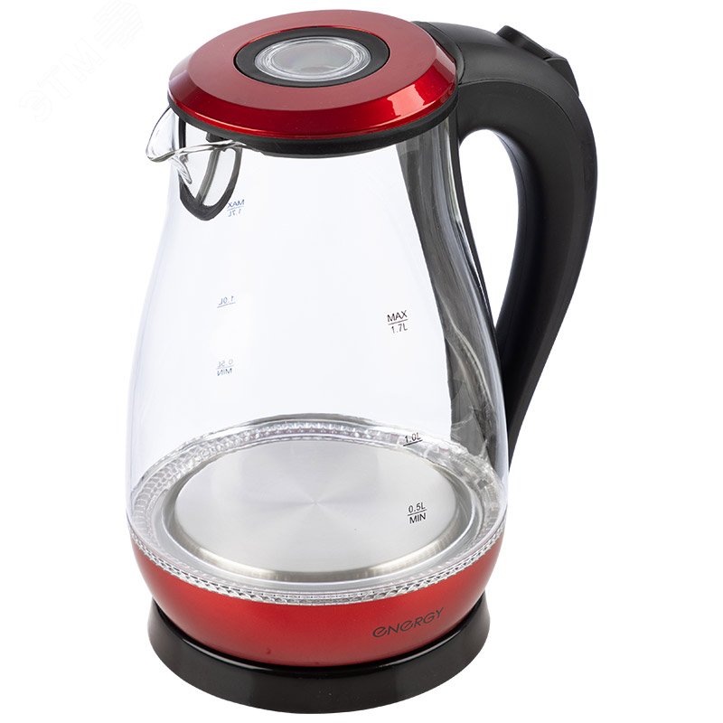Чайник стеклянный E-204 на 1.7 л, цвет красный