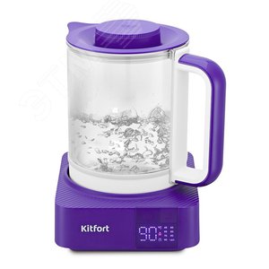 Электрический чайник с электронным терморегулятором Kitfort КТ-6191 может не только вскипятить воду, но и нагреть её до температур - 45, 50, 55, 60, 70, 80 и 90 С,/ Корпус чайника выполнен из стекла и нержавеющей стали, а крышка и подставка — из сочетания пластика и нержавеющей стали. Мерная шкала нанесена на стеклянную часть корпуса. Ручка чайника пластиковая, не нагревается и удобно лежит в руке. На подставке чайника расположена панель управления. На дисплее отображается температура воды и значок режима. Во время работы чайника дисплей показывает текущую температуру воды и выбранную температуру нагрева, что очень удобно. Чайник имеет функцию поддержание температуры в течение 24 часов. Полный чайник закипает примерно за десять минут. Прибор имеет защиту от перегрева и от включения без воды - при включении без воды чайник нагревается и отключается (срабатывает защита от перегрева).