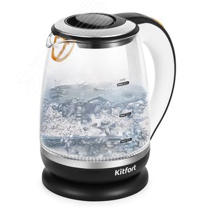 Электрический чайник Kitfort KT-6199 предназначен для быстрого кипячения воды дома, в офисе или на даче. Этот мощный чайник большой ёмкости представляет собой идеальное сочетание стекла, пластика и нержавеющей стали. Нагревательный элемент этого чайника спрятан под металлической пластиной из нержавеющей стали. На внешней стороне чайника расположена мерная шкала, рассчитанная на объем до 2 л. На верхней крышке имеется кнопка открытия. Прибор имеет защиту от перегрева, которая предотвращает включение прибора без воды. В носике чайника имеется съёмный фильтр, который улавливает частицы накипи и предотвращает их попадание в чашку. При включении чайника белая подсветка по периметру дна сигнализирует о его рабочем состоянии, а также красиво подсвечивает воду. Снизу имеется отсек для хранения шнура. Для предотвращения накипи используйте фильтрованную воду.