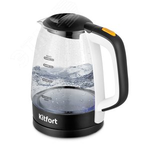 Электрический чайник Kitfort КТ-6633 предназначен для кипячения воды дома, в офисе, на даче. Корпус чайника выполнен из стекла и пластика. Ручка чайника пластиковая, не нагревается и удобно лежит в руке. Полный чайник закипает приблизительно за 6 минут. Нагревательный элемент у чайника в донной части. Сверху он закрыт пластиной из нержавеющей стали, что препятствует образованию накипи, облегчает уход и значительно снижает шум при нагревании воды. При включении чайника загорается подсветка около дна прибора, которая является индикатором работы. Чайник автоматически выключается при закипании и снятии с подставки, имеет защиту от перегрева и включения без воды. Подставка с центральным контактом даёт возможность располагать на ней чайник в любом положении, обеспечивая вращение на 360 Снизу имеется отсек для хранения шнура.