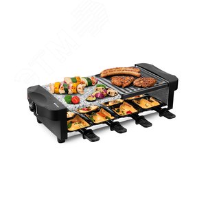 Раклетница Kitfort КТ-1647 - это устройство для приготовления разнообразных закусок, а также она может объединить вокруг себя тёплую компанию друзей. Это превосходная альтернатива традиционным застольям! Убедитесь сами! Приглашайте гостей и родственников, и устраивайте раклет-вечеринку. Пока на сковородках плавится сыр, ваши гости сами приготовят себе начинку по своему вкусу - обжарят кусочки картофеля или перца, приготовят стейк или колбаски. Устройство оснащено ТЭНом, под которым имеются специальные углубления для порционных сковородок для сыра. Сверху ТЭН закрывает панель, на которой можно обжаривать продукты. ТЭН раклетницы нагревает панель для гриля и расплавляет сыр в сковородках. По бокам раклетницы расположены удобные пластиковые ручки для переноски. Температура регулируется термостатом. Вы можете плавно менять температуру при помощи регулятора на корпусе прибора.