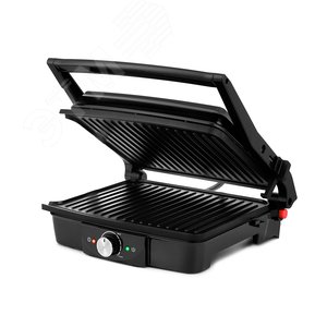 Электрогриль КТ-1656 предназначен для приготовления мяса, рыбы, овощей, сосисок, бутербродов, сэндвичей, гренок, тостов! Панели изготовлены из алюминия с нанесённым антипригарным покрытием. Для очистки пластин их достаточно просто протереть пока они не остыли. Регулятор t позволяет плавно регулировать t приготовления от мин – 100-140 С, до макс – 180-220 С. Индикатор нагрева горит в то время, когда включен нагревательный элемент. Индикатор питания загорается при подключении гриля к сети и гаснет при отключении. В одностороннем режиме крышка гриля откидывается на 180 , благодаря чему гриль превращается в большую жаровню, а продукты можно выложить сразу на две панели. Для раскладывания гриля предусмотрена специальная кнопка на боковой части корпуса.