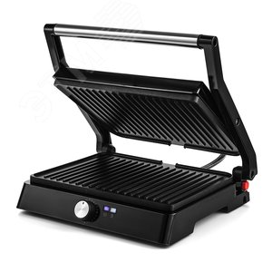 Электрогриль КТ-1661 предназначен для приготовления мяса, рыбы, овощей, сосисок, бутербродов, сэндвичей, гренок, тостов! Панели изготовлены из алюминия с нанесённым антипригарным покрытием. Благодаря конструкции панелей со встроенными нагревателями, нагрев и передача температуры на поверхность происходит эффективнее, и время прогрева и приготовления сокращается. В одностороннем режиме крышка гриля откидывается на 180 , благодаря чему гриль превращается в большую жаровню, а продукты можно выложить сразу на две панели. Для раскладывания гриля предусмотрена специальная кнопка на боковой части корпуса. Электрогриль оснащён термостатом для поддержания постоянной температуры панелей и индикаторами, показывающими наличие питания, а также включение и отключение нагрева. Весь лишний жир и сок из блюд попадет в съёмный поддон. Просто выньте поддон и помойте его с моющим средством!