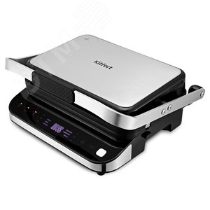 Электрогриль ''2 в 1'' предназначен для приготовления мяса, рыбы, овощей, сосисок, бутербродов и многих других блюд. Электрогриль оснащён панелями для гриля с ребристой поверхностью, с помощью которых вы можете приготовить мясо, овощи, сосиски и многое другое. Также в комплекте идут две дополнительные панели для приготовления вкуснейших домашних вафель! С помощью панели управления вы можете выбрать автоматический режим работы - мясо, рыба, курица, сосиски, гамбургер и бекон. Кроме того, прибор обладает функцией разморозки продуктов. С помощью КТ-1682 вы можете готовить как в двухстороннем, так и в одностороннем режиме. В одностороннем режиме крышка гриля откидывается на 180 , и гриль превращается в большую жаровню. Для приготовления можно использовать обе поверхности. Нагревательные панели изготовлены из алюминия с нанесённым антипригарным покрытием.