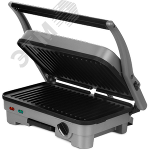 Электрогриль КТ-3621 позволяет готовить мясо, рыбу, овощи, сосиски, бутерброды, панини и многие другие блюда. Термостат обеспечивает плавность регулировки, а также функцию поддержания температуры. Регулятор температуры – это ручка термостата. Вокруг регулятора нанесена шкала - температура 70 - 90 С соответствует началу шкалы, 190 - 210 С — концу. Два режима. В двухстороннем режиме гриль закрывается крышкой. В одностороннем режиме крышка гриля откидывается на 180 , и гриль превращается в большую жаровню. Нагревательные панели изготовлены из алюминия с нанесённым антипригарным покрытием. Весь лишний жир и сок из блюд попадёт в съёмный поддон. Антипригарное покрытие позволяет готовить с минимальным количеством масла или без него.