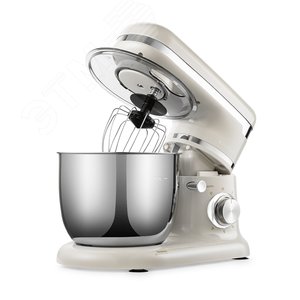 Планетарный миксер КТ-3422 с мощностью 1000 Вт и чашей на 5 л поможет вам смешать ингредиенты, взбить яичный белок или сливки, приготовить картофельное пюре, соус, крем, мусс, замесить жидкое тесто для блинов и крутое — для пельменей и пирогов. При нажатии на кнопку откидывается моторный блок для установки и снятия насадок и чаши. В комплекте идут венчик для взбивания, крюк для замеса крутого теста, насадка для смешивания продуктов и приготовления пюре. Форма насадок и чаши подобраны так, что почти при любом количестве продуктов насадка перемешает их качественно и быстро. В металлической чаше можно смешивать даже горячие ингредиенты. Съёмная крышка предотвращает разбрызгивание ингредиентов при взбивании. Через загрузочное отверстие можно добавлять ингредиенты прямо во время работы миксера. Планетарный миксер КТ-3422 имеет 2 стильных цветовых решения.