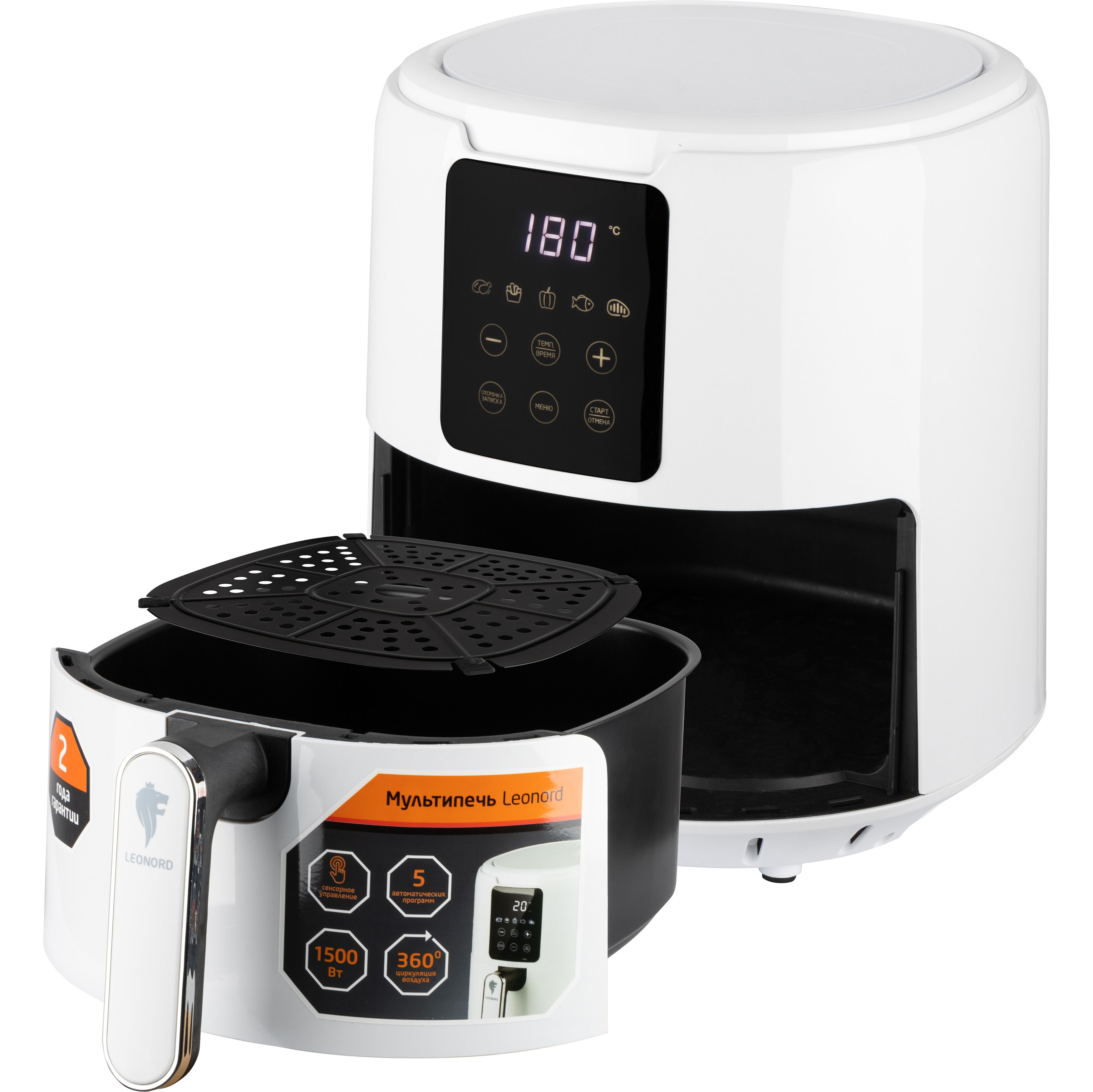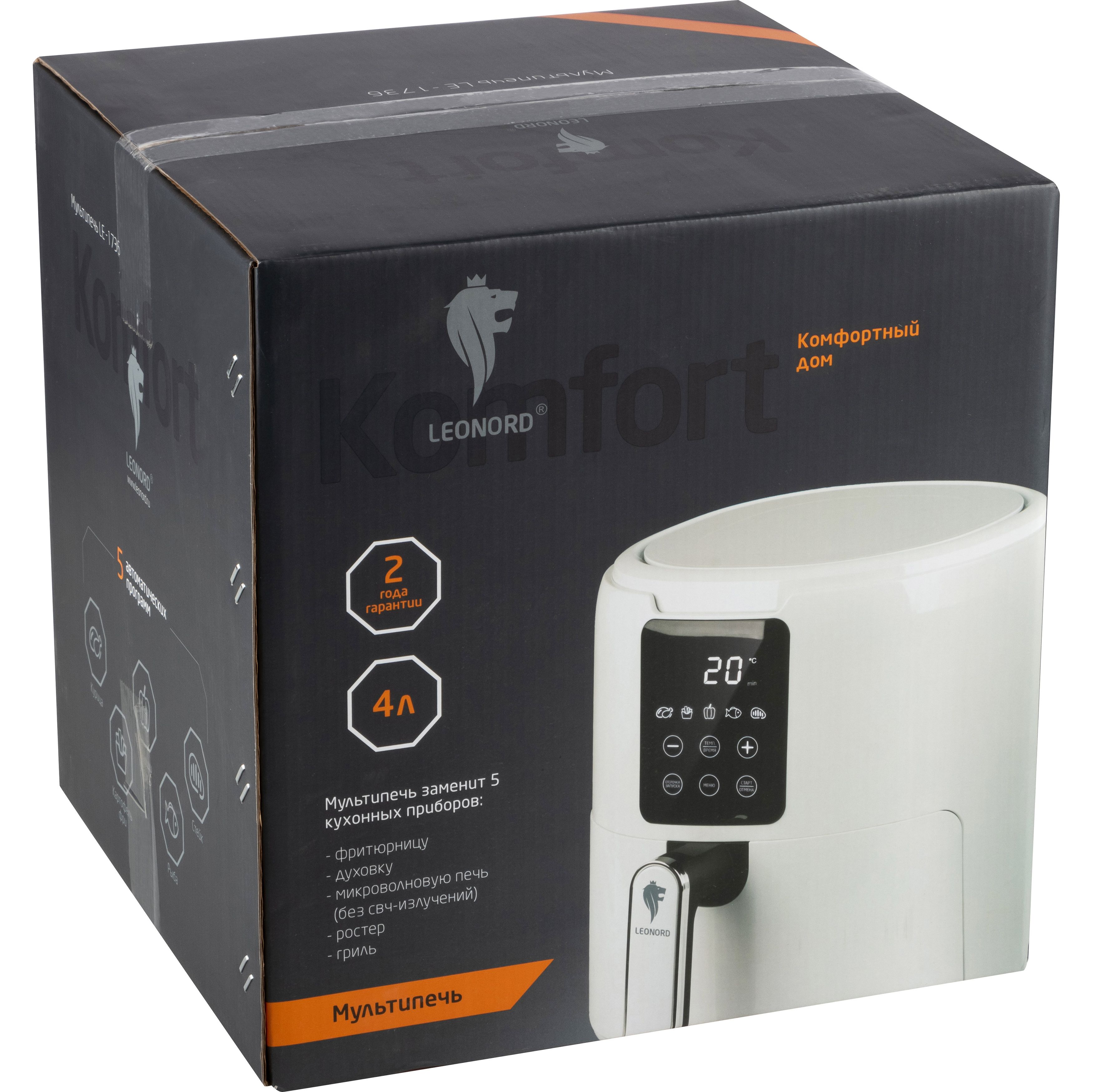 Мультиварка Leonord LE-1736 сочетает в себе лаконичный элегантный дизайн и широкие функциональные возможности. Она оборудована удобной 3,8-литровой чашей, в которой можно готовить повседневные блюда в оптимальном количестве. Преимущества - Сенсорная панель, 5 программ, Автоотключение, Циркуляция воздуха 360°С. Предназначена для приготовления пищи.