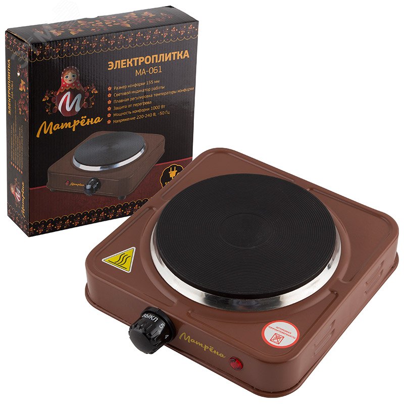Электроплитка МА-061, нагревательная плита, цвет коричневый