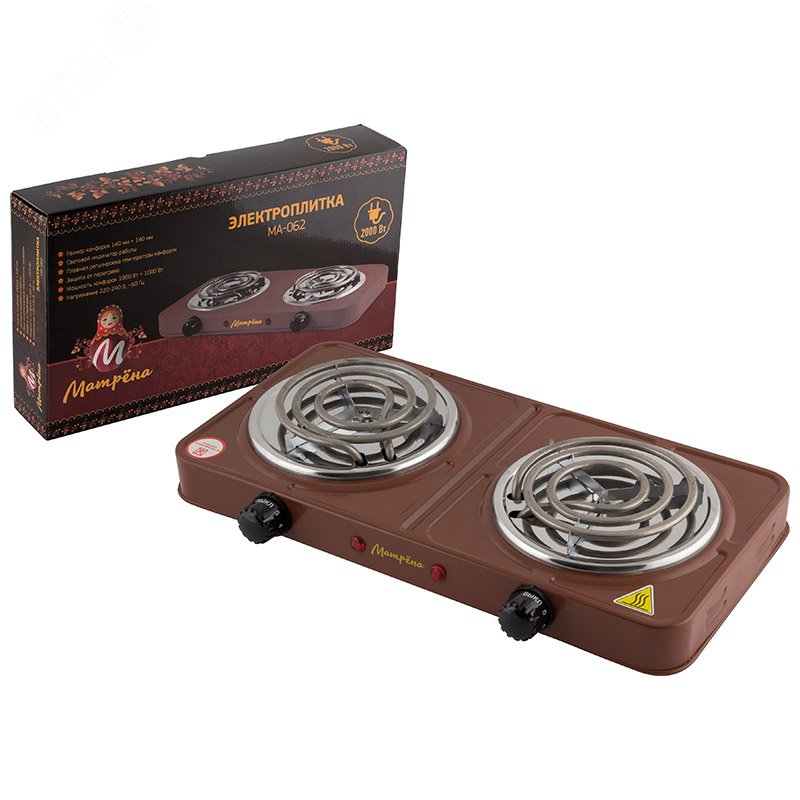 Электроплитка двухконфорочная МА-062, нагревательный ТЭН, цвет коричневый