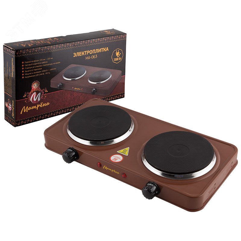Электроплитка двухконфорочная МА-063, нагревательная плита, цвет коричневый