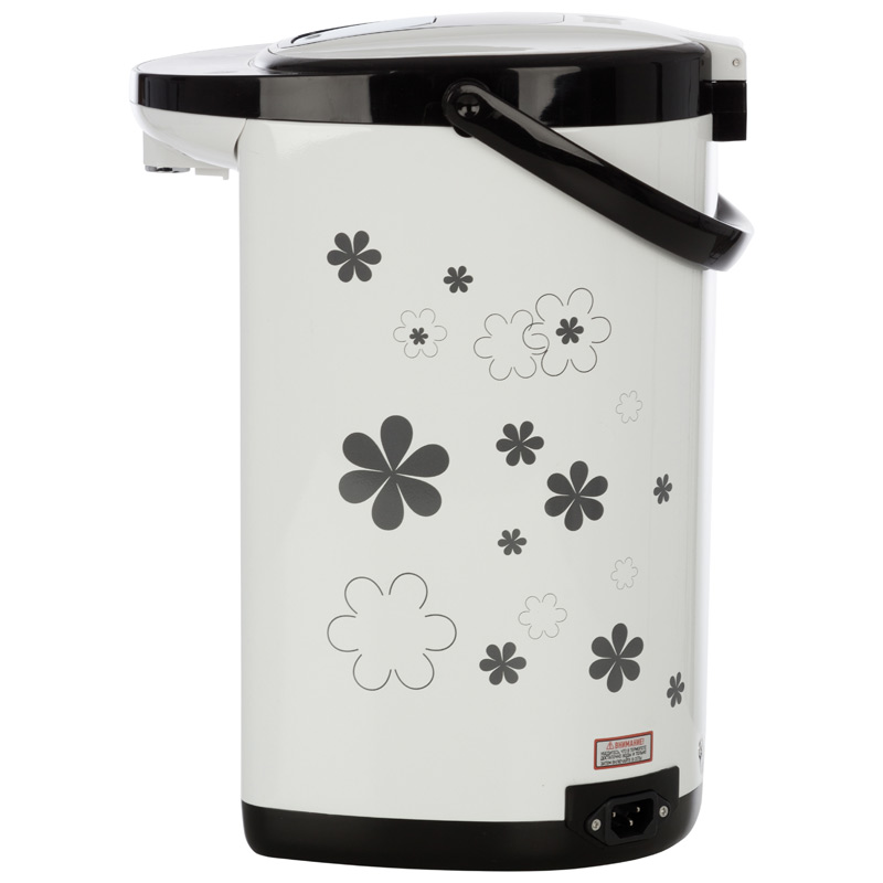 Термопот Energy TP-617 в корпусе из пластика черного цвета обладает системой блокировки, которая не допускает риск обжигания кожи под воздействием пара. Получить доступ к функционалу вы сможете через кнопочную панель. Соответствующие индикаторы информируют о выбранных режимах. Термопот Energy TP-617 мощностью 750 Вт оборудован электрическим насосом, с использованием которого производится подача воды. Мерная шкала сообщит об остатке содержимого в 5-литровом резервуаре. Внутренняя колба выполнена из нержавеющей стали. Материал исключает вероятность преждевременного остывания жидкости. Фильтрующий элемент нейтрализует посторонние примеси. Ручка поможет удобно перенести прибор.