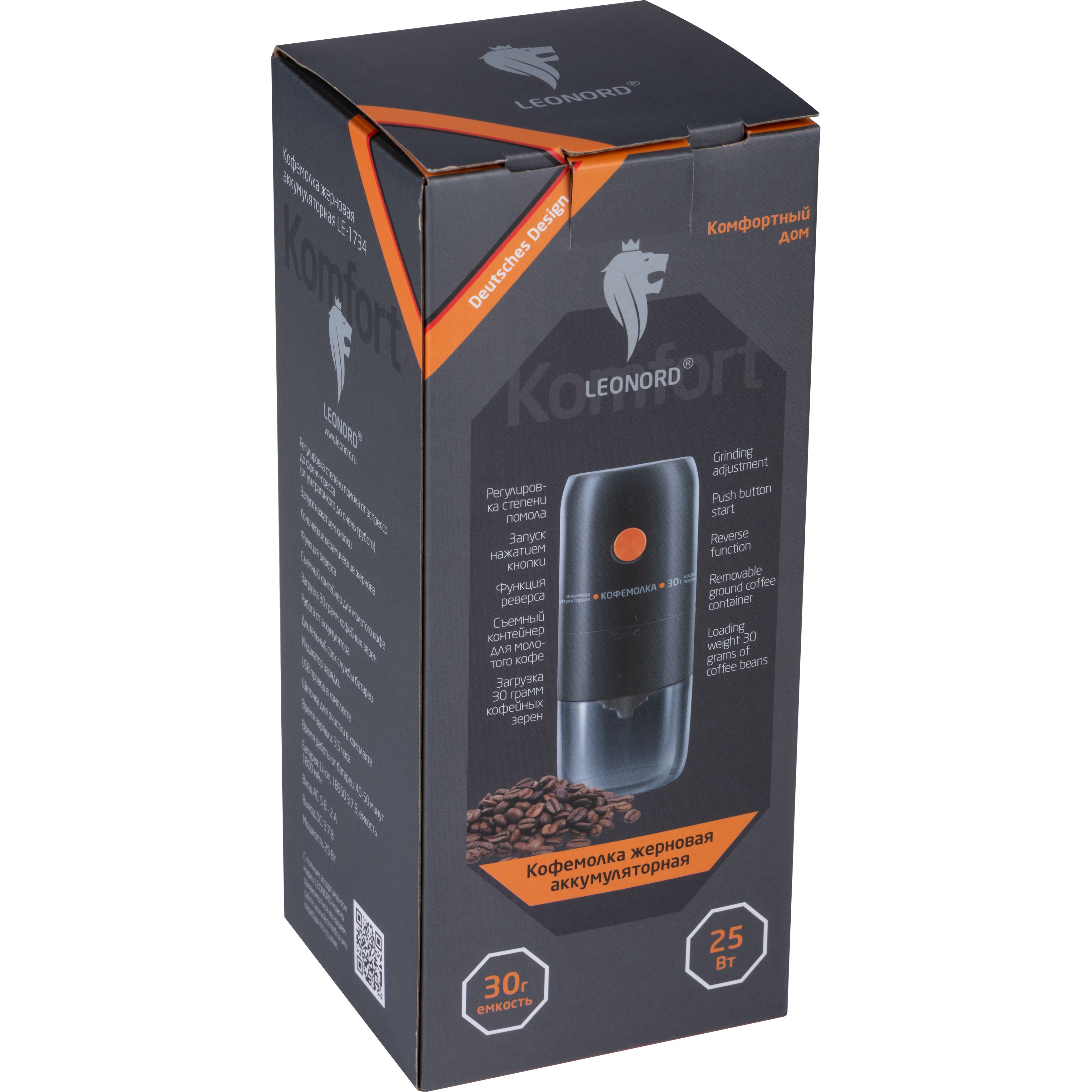 Кофемолка жерновая аккумуляторная LE-1734, цвет черный
