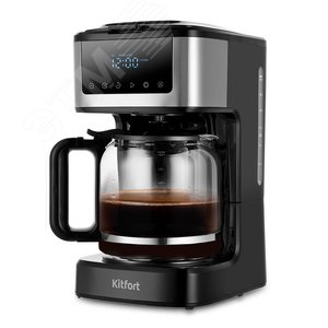 Капельная кофеварка КТ-7181 готовит ароматный чёрный кофе из молотого кофе. В процессе приготовления вода нагревается в резервуаре, затем подкачивается помпой и подаётся в фильтр с молотым кофе. Управление осуществляется при помощи сенсорных кнопок. На дисплее отображаются выбранный режим, текущее время или время подогрева. Кофеварка оснащена нейлоновым фильтром, которым можно пользоваться неограниченное количество раз. По окончании приготовления кофеварка перейдёт в режим подогрева. Платформа с подогревом, на которой стоит кофейник с готовым кофе, будет горячей в течение 40 минут, затем кофеварка выключится. Для приготовления кофе со льдом в комплекте предусмотрен защитный коврик, чтобы кофейник не нагревался от тепла, выделяемого платформой для подогрева. Кофеварка оборудована противокапельной системой - затвором, приостанавливающим подачу кофе при вынимании кофейника из кофеварки.