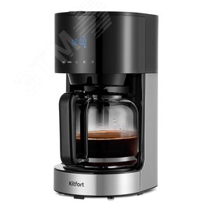 Капельная кофеварка Кіtfort КТ-7297 поможет приготовить ароматный кофе из молотого кофе. Устройство имеем вместительный резервуар для воды - 1,5 литра. На резервуаре для воды и кофейнике нанесены соответствующие отметки, поэтому вам будет удобно приготовить нужное количество чашек кофе. На дисплее отображается выбранный режим, а также текущее время или время подогрева. Крепость кофе можно регулировать кнопкой на панели управления. Функция отложенного старта позволит начать приготовление кофе в заданное время. Установите время приготовления, и к моменту, когда вы проснетесь, вас будет ждать ароматный свежезаваренный кофе. Кофеварка оборудована противокапельной системой - затвором, приостанавливающим подачу кофе при вынимании кофейника из кофеварки. Вы можете налить кофе в чашку, не дожидаясь окончания приготовления.