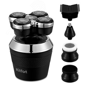 Электробритва Kitfort KT-3142 – это прибор для бритья, а также для подравнивания усов или бороды. У данной бритвы основная насадка роторная. В комплекте с устройством идут гребни-насадки разной длины и скошенный гребень для стрижки волос вокруг ушей. С помощью 5 съёмных гребней вы можете оставить волосы определённой длины, установив режим стрижки волос от 3 до 15 мм. Насадка-триммер создана для бритья и подравнивания волос на лице. Лезвия триммера находятся с двух сторон. С помощью насадки для носа вы можете безопасно удалять волосы из ушей и носа. Зарядить аккумулятор можно с помощью шнура питания USB, идущего в комплекте с электробритвой. Время зарядки полностью разряженного аккумулятора – 3 часа. В комплекте с устройством идёт USB-шнур, расчёска, а также щёточка для чистки лезвий и бутылочка с маслом.