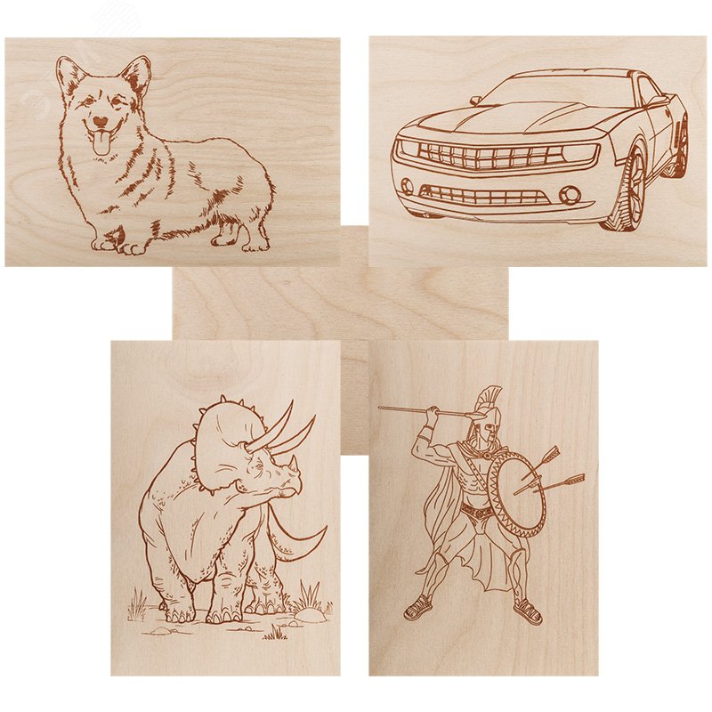 Выжигание по дереву - прекрасное хобби как для ребенка, так и для взрослого. Доски для выжигания по дереву изготовлены из качественной шлифованной фанеры и относятся к эко-игрушкам, обладают всеми сопутствующем достоинствами- - естественный цвет и запах положительно влияют на психику, - фактура, текстура и плотность дерева передают тактильные ощущения и играют важную роль в познании мира, дают ребенку реальные представления о вещах и материалах, - натуральные материалы развивают вкус и эстетические качества. Для занятий вам понадобится прибор для выжигания, также оформить работу можно акварельными и гуашевыми красками, цветными карандашами и фломастерами. У детей развивается мелкая моторика пальцев, внимательность, усидчивость и аккуратность. У ребенка формируются навыки рисования и фантазия, основы работы с выжигателем.