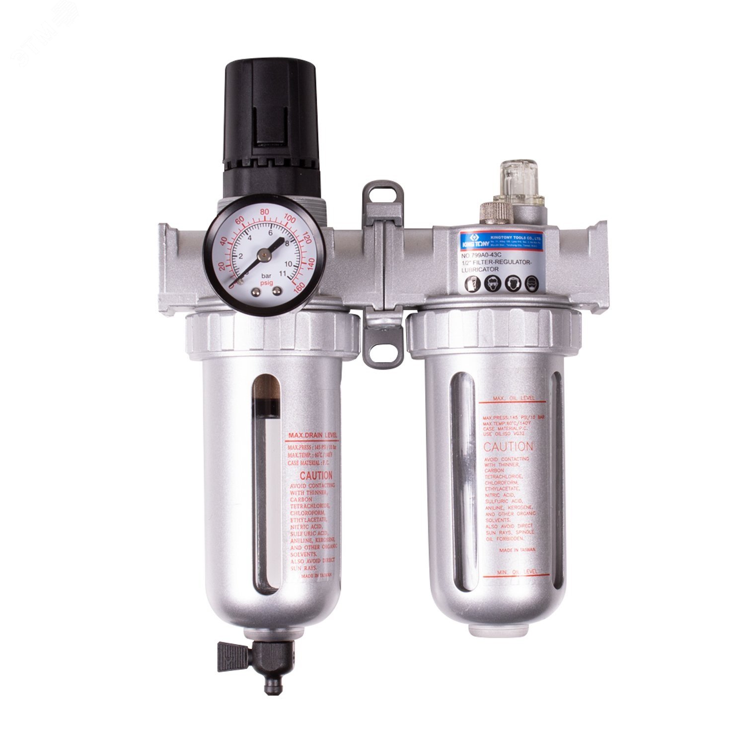 Фильтр влагоотделитель с редуктором и лубрикатор 3/8', 10 бар