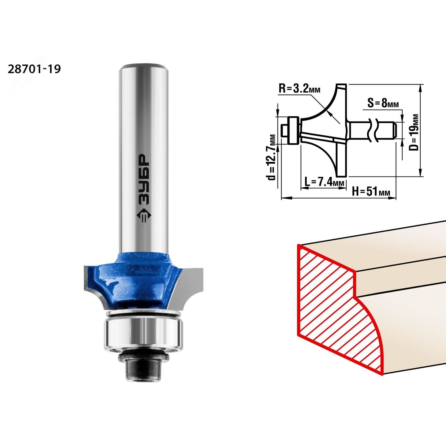 Кромочная калевочная фреза Профессионал №1, 19x7.4 мм, радиус 3.2 мм