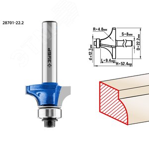 Кромочная калевочная фреза Профессионал №1, 22.2x9.4 мм, радиус 4.8 мм