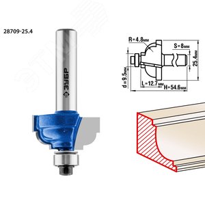 Фреза кромочная калевочная №7 25.4x13мм, радиус 4.8мм