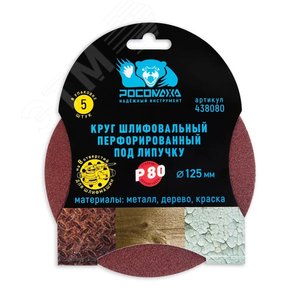 Круг шлифовальный, перфорированный 8 отверстий под липучку 125 мм зерно 80 5 шт уп.