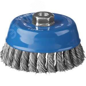 Щетка чашечная для УШМ, плетеные пучки стальной проволоки 0,5мм, 120ммхМ14 ''Профессионал''.