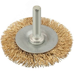 Кордщетка, тип ''колесо'', со штифтом, стальная латунированная волнистая проволока 75 мм
