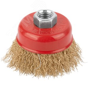 Кордщетка чашечная, гайка М14, стальная латунированная волнистая проволока 65 мм