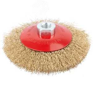 Кордщетка-колесо с наклоном, гайка М14, стальная волнистая латунированная проволока 125 мм