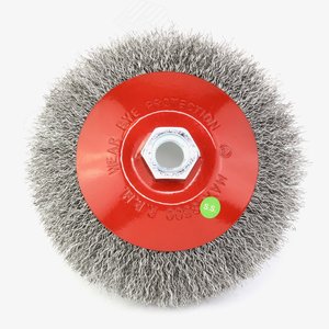 Щетки конические разного диаметра (100, 115, 125 мм) с посадкой М14 на УШМ (Болгарка) с гофрированным (волнистым) ворсом предназначены для средней тяжести зачистных работ по изделиям из нержавеющих сталей и цветных металлом, используются в основном для работы в труднодоступных местах, стыках, переходах поверхностей. Обрабатываемый материал - нержавеющая сталь, алюминий. Электроинструменты / станки - для УШМ (болгарка) / на 125 мм и более. Диаметр D, Д (мм) - 125. Размер A, E (мм) - 12. Размер T, S (мм) - 25. Посадочный диаметр B, G, F (мм) - М14 (шаг 2,00). Материал ворса щетки - сталь нержавеющая. Диаметр ворса (мм) - 0,30. Тип (форма) ворса - гофрированный (волнистый). Максимальная скорость (об/мин) - 8500.
