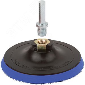 С липучкой. Используется со шлифовальными и полировальными кругами. Гайка М14 для установки на шлифовальные и отрезные машины. В комплекте переходник со штифтом для крепления на дрель. Материал - инструментальная сталь, пластик, подложка из ЭВА.