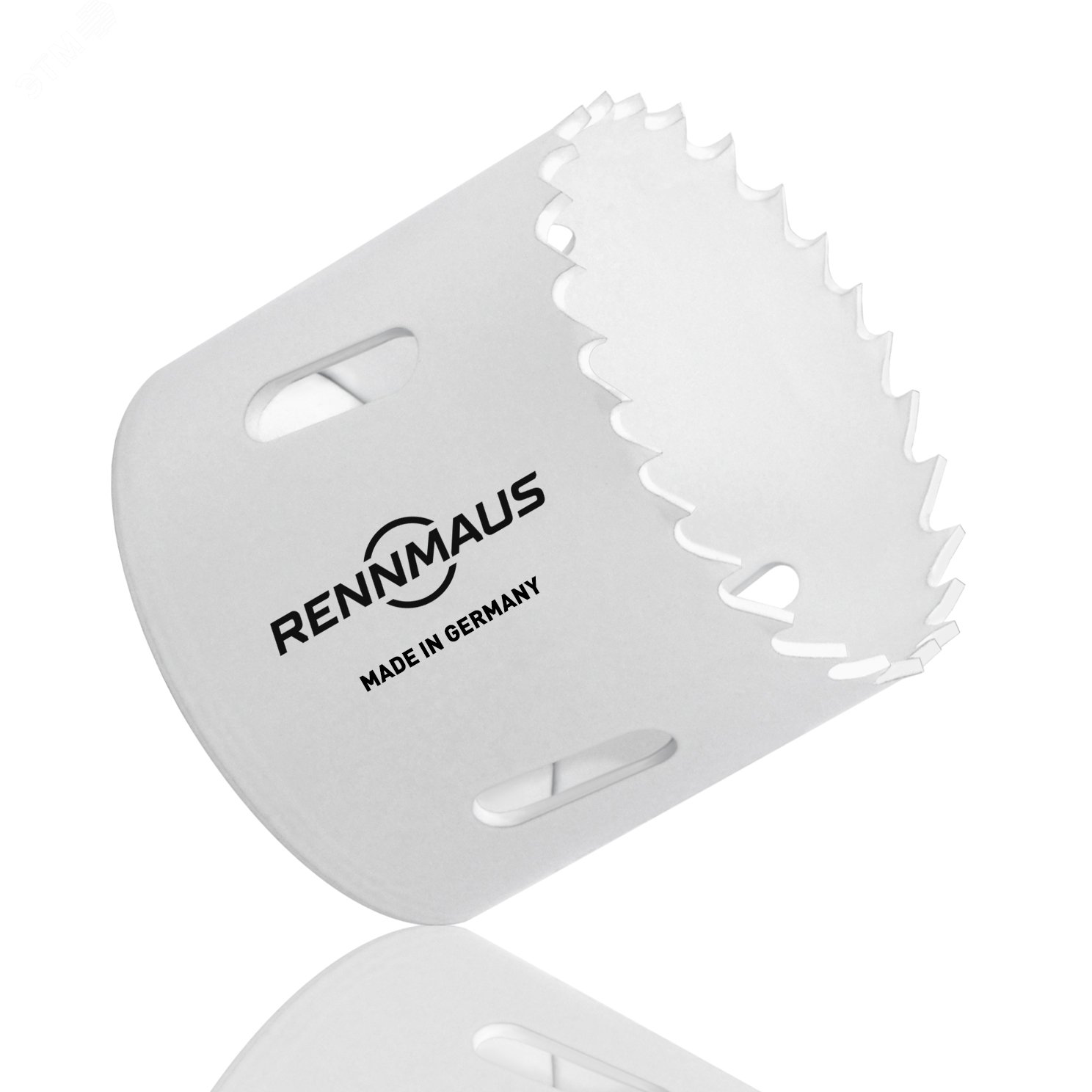 Коронка биметаллическая Rennmaus 57мм (крупный зуб) по дереву и металлу Bi metall HSS, арт.RMG057 Изготовлена по технологии COBA-TEC MULTI. Незаменимый помощник для электриков, сантехников, монтажников. Утолщенная крышка обеспечивает пониженную вибрацию. Значительно увеличенный срок службы за счет утолщенных стенок. Изготовлены из качественной немецкой стали. Гарантированное содержание Cobalt 8%. Специальная геометрия зуба VARIO для быстрого и чистого реза. Идеально подходит для работ по стали, нержавеющей стали от 1,5 мм, легированному и нелегированному алюминию, цветным металлам, пластмассе, гипсокартону, древесно-стружечным плитам, дереву, ламинату.