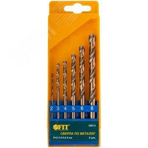 Набор сверл HSS по металлу с добавкой кобальта 5%, 6 шт (2-3-4-5-6-8 мм)