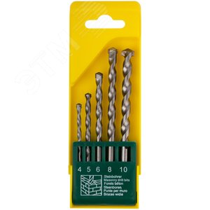 Набор сверл победитовых ударных, цилиндрический хвостовик, 5 шт (4-5-6-8-10 мм)