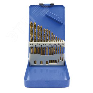 Набор сверл по металлу HSS шлифованные, титановое покрытие, угол заточки 135град, мет.бокс,19 шт. (1-10 мм через 0,5 мм)