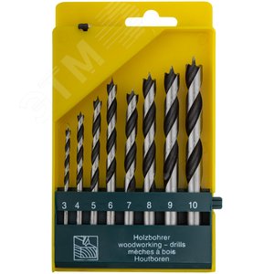 Набор сверл по дереву, CrV Профи, пластиковый бокс, 8 шт (3-4-5-6-7-8-9-10 мм)