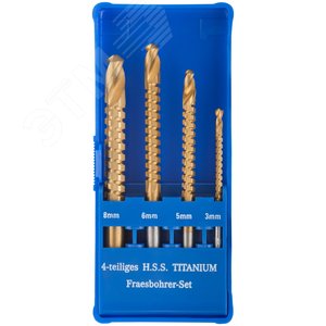 Сверло-фреза универсальное титановое покрытие, набор 4 шт (3, 5, 6, 8 мм)