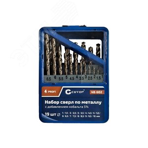 Набор профессиональных сверл по металлу CUTOP Profi с добавлением 5 процентов кобальта предназначен для сверления отверстий в углеродистых и легированных сталях, серых и ковких чугунах, цветных металлах и пластике. Сверла имеют высший класс точности А1 и высверливают отверстия с высокоточным диаметром. 5 процентов кобальта и легирующие элементы в составе стали обеспечивают сверла такими преимуществами, как высокий рабочий ресурс, низкая хрупкость, стойкость к истиранию, улучшенные режущие свойства, высокая твердость, повышенная износостойкость. Цилиндрический хвостовик сверл совместим с патронами большинства дрелей и шуруповертов. 13 сверл в комплекте обеспечивают широкий спектр применения.