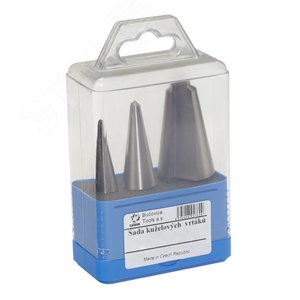Набор из 3-х конических сверл No 1, 2, 3 Bucovice Tools 541801 оптимален для работ по металлу. Комплект используется совместно с различными электроинструментами. Основные характеристики - особая коническая форма, вывод сверла из обрабатываемого материала не требует физических усилий, изделия произведены из износостойкой стали, сверла выдерживают значительные нагрузки, высокое качество обработки, оптимальная заточка и гладкая поверхность обеспечивают длительный срок службы. Изделия подходят для обработки листовой и инструментальной стали, а также пластика. Набор поставляется в прочном футляре.