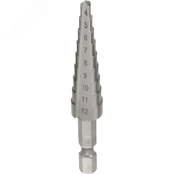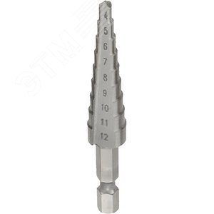 Сверло ступенчатое HSS с прямым желобком, 4-12x65, 1/4''