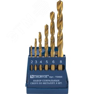 Набор спиральных сверл по металлу HSS TiN в пластиковом кейсе, d2.0-8.0 мм, 6 предметов