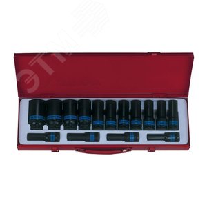 Набор ударных глубоких торцевых головок 1/2', шестигранные, 10-32 мм, 15 предметов