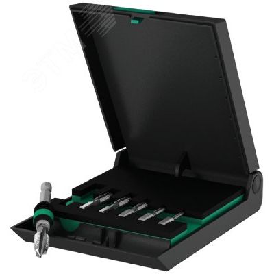 Набор насадок-метчиков 844/7 однопроходных с битодержателем 7 предметов хвостовики шестигранные: метчики 1/4 C 6.3 битодержатель 1/4 E 6.3