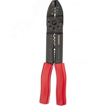 Кримпер REXANT HT-204 — универсальный инструмент, объединяющий в себе функции обжимного инструмента, винтореза и стриппера. Корпус выполнен из прочной закаленной стали. Обрезка проводов, обжим изолированных наконечников с 3 типоразмерами 1.25, 2.0, 5.5 мм2 (профиль обжима овальный одноконтурный), обрезка винтов с 5 типоразмерами (М2.6, М3, М5, М4, М3,5), обжим неизолированных наконечников с 3 типоразмерами 1.25, 2.0, 5.5 мм2. (профиль обжима клиновидный), снятия изоляции (зачистка) с проводов с 6 типоразмерами - 0.75, 0.9, 1.25, 2.0, 3.5, 5.5 мм2. Эргономичные рукоятки покрыты специальным материалом, который исключает скольжение ладоней.